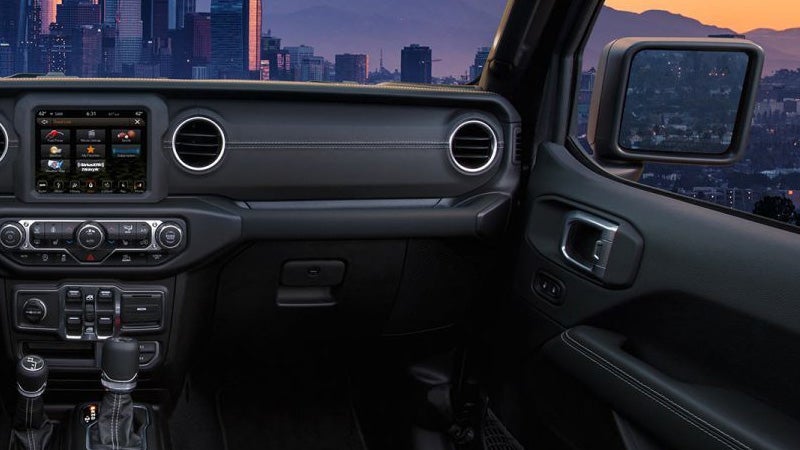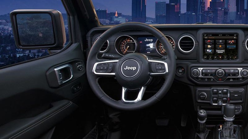 The base trim comes with 17-inch black steel wheels, front fog lights, halogen headlights, cargo tie-down loops, all-terrain tires, one rear and two front tow hooks, and a Class II bumper hitch. With the Sport S trim you'll get 17-inch aluminum wheels, and heated and power-adjustable mirrors, while the Overland trim adds 18-inch aluminum wheels, daytime running lights, side steps, tinted windows, and automatic headlights. The off-road-ready Rubicon trim gets 17-inch aluminum wheels, lockable front and rear differentials, 33-inch all-terrain tires, a disconnectable front stabilizer bar, rock rails, skid plates, and Fox shock absorbers.
