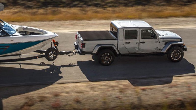 If your Gladiator is properly equipped, you'll get a best-in-class tow rating of 7,650 pounds, as well as a best-in-class payload rating of 1,600 pounds. You'll also get good off-road performance from your Gladiator, as all models proudly wear that Trail Rated badge and are equipped with heavy-duty Dana 44 axles, skid plates, and tow hooks. However, if you want superior off-road performance, opt for the Rubicon trim.