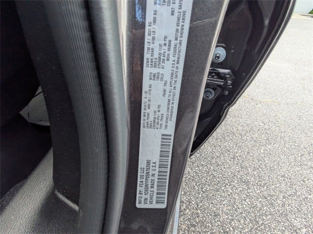 Big Horn Level 1 Equipment Group (115V Auxiliary Power Outlet, 2nd Row In Floor Storage Bins, 400W Inverter, Auto Power-Folding Mirrors, Auto-Dimming Exterior Driver Mirror, Auto-Dimming Rear-View Mirror, Black Exterior Mirrors, Black Premium Power Mirrors, Convex Wide-Angle Exterior Mirror Insert, Exterior Mirrors Courtesy Lamps, Exterior Mirrors w/Heating Element, Exterior Mirrors w/Supplemental Signals, Glove Box Lamp, Heated Front Seats, Heated Steering Wheel, Leather Wrapped Steering Wheel, Power 2-Way Driver Lumbar Adjust, Power Adjust 8-Way Driver Seat, Power Adjustable Pedals, Rear Power Sliding Window, Rear Window Defroster, Steering Wheel Mounted Audio Controls, Sun Visors w/Illuminated Vanity Mirrors, and Universal Garage Door Opener), Quick Order Package 21Z Big Horn, Sport Appearance Package (3 Rear Seat Head Restraints, 4 Way Front Headrests, Black Interior Accents, Body Color Door Handles, Body Color Front Bumper, Body Color Rear Bumper w/Step Pads, Body Color Tailgate Handle, Bucket Seats, Deluxe Cloth Bucket Seats, Front Seat Back Map Pockets, Full Length Floor Console, Grille Surround 1 Body Color Texture 1 Black, Manual Adjust 4-Way Front Passenger Seat, RAM Grille Badge - Chrome, Rear 60/40 Folding Seat, and Rear Center Armrest), Trailer Tow Group (Accent Color Tailgate Handle, Black Trailer Tow Power Mirrors, Manual Folding Exterior Mirrors, Manual Telescoping Mirrors, Mirror Clearance/Running Lights, Power-Adjustable Convex Aux Mirrors, Trailer Brake Control, Trailer Reverse Steering Control, Trailer Tire Pressure Monitoring System, and Trailer Tow Mirrors), 4-Wheel Disc Brakes, 4G LTE Wi-Fi Hot Spot, 6 Speakers, ABS brakes, Air Conditioning, Alloy wheels, AM/FM radio, Apple CarPlay/Android Auto, Auto High-beam Headlights, Brake assist, Bumpers: chrome, Cloth Bench Seat, Compass, Connectivity - US/Canada, Delay-off headlights, Driver door bin, Dual front impact airbags, Dual front side impact airbags, Electronic Stability Control, Front anti-roll bar, Front Center Armrest w/Storage, Front fog lights, Front reading lights, Front wheel independent suspension, Fully automatic headlights, GPS Antenna Input, Heated door mirrors, Illuminated entry, Integrated Voice Command w/Bluetooth®, Low tire pressure warning, MOPAR Front & Rear Rubber Floor Mats, Occupant sensing airbag, Outside temperature display, Overhead airbag, Overhead console, Panic alarm, ParkView Rear Back-Up Camera, Passenger door bin, Passenger vanity mirror, Power door mirrors, Power steering, Power windows, Radio data system, Radio: Uconnect 5 W w/8.4 Display, Rear anti-roll bar, Rear seat center armrest, Rear step bumper, Remote keyless entry, Speed control, Split folding rear seat, Supplier Part Tracking (J-1), Tachometer, Telescoping steering wheel, Tilt steering wheel, Traction control, Trip computer, USB Host Flip, Variably intermittent wipers, Voltmeter, Wheels: 18 x 8 Cast-Aluminum Painted, and Wheels: 20 x 9 Aluminum Chrome Clad (WRK) Price includes: $1000 - 2025 National Bonus Cash . Exp. 02/02/2026