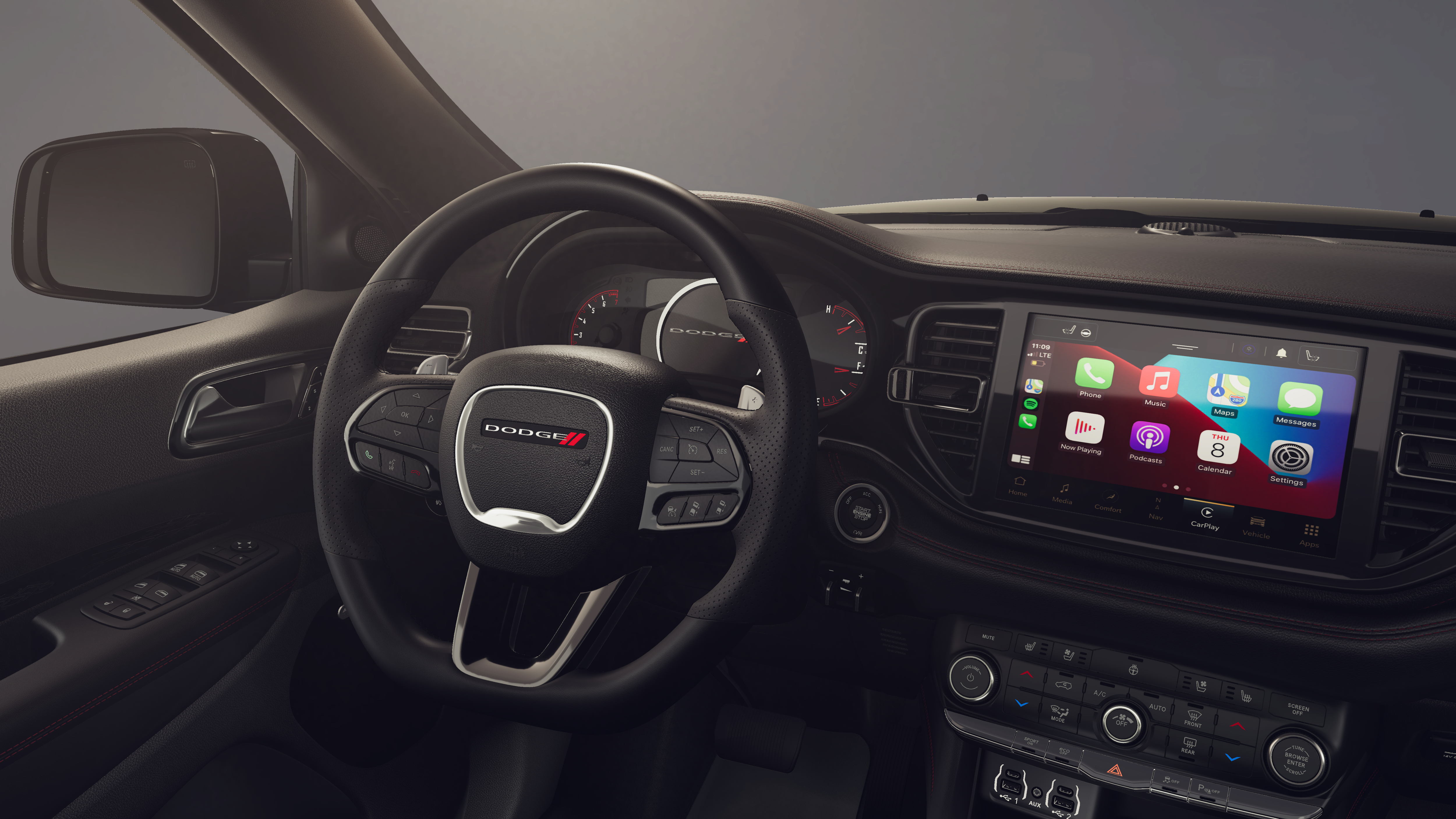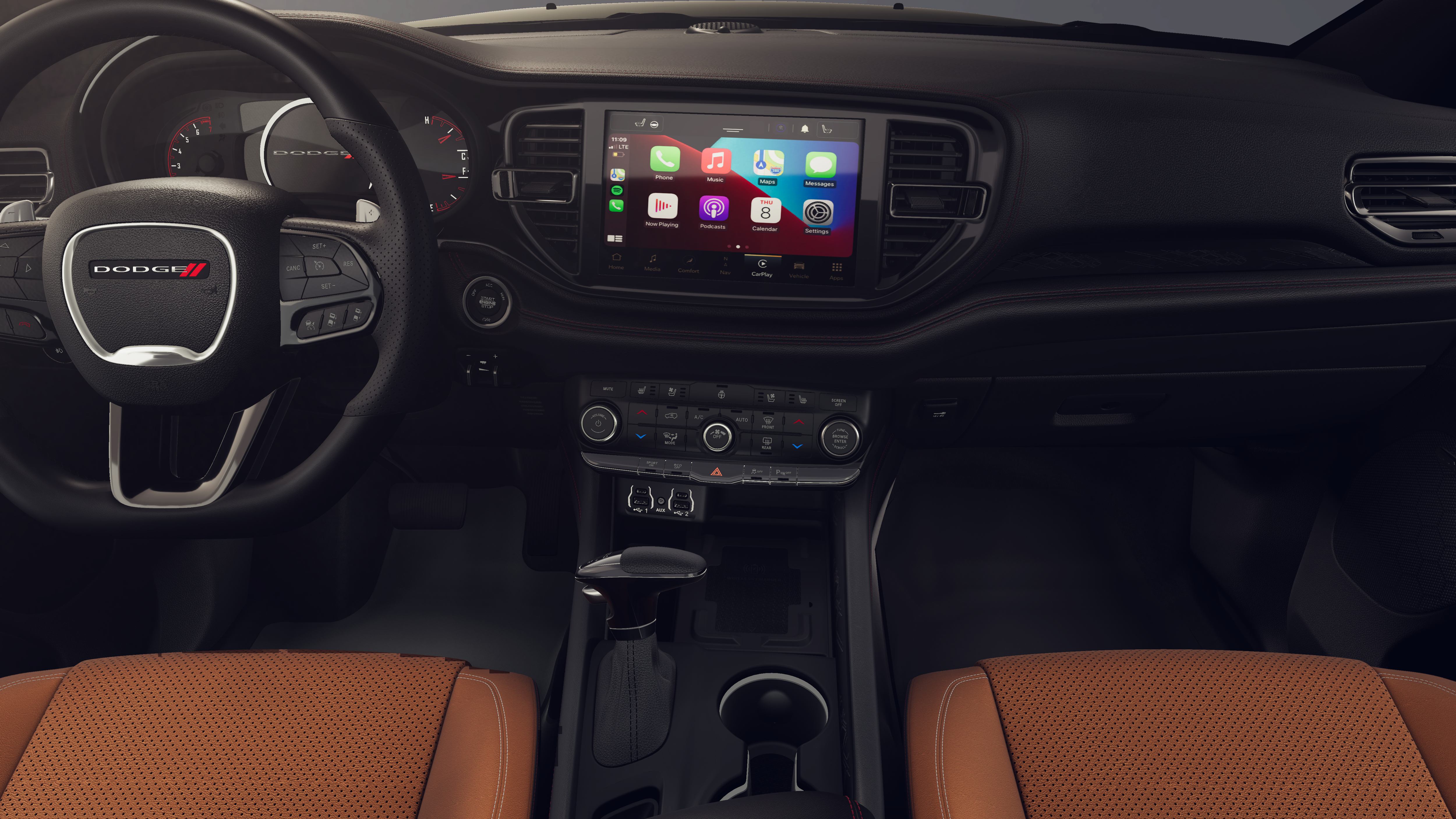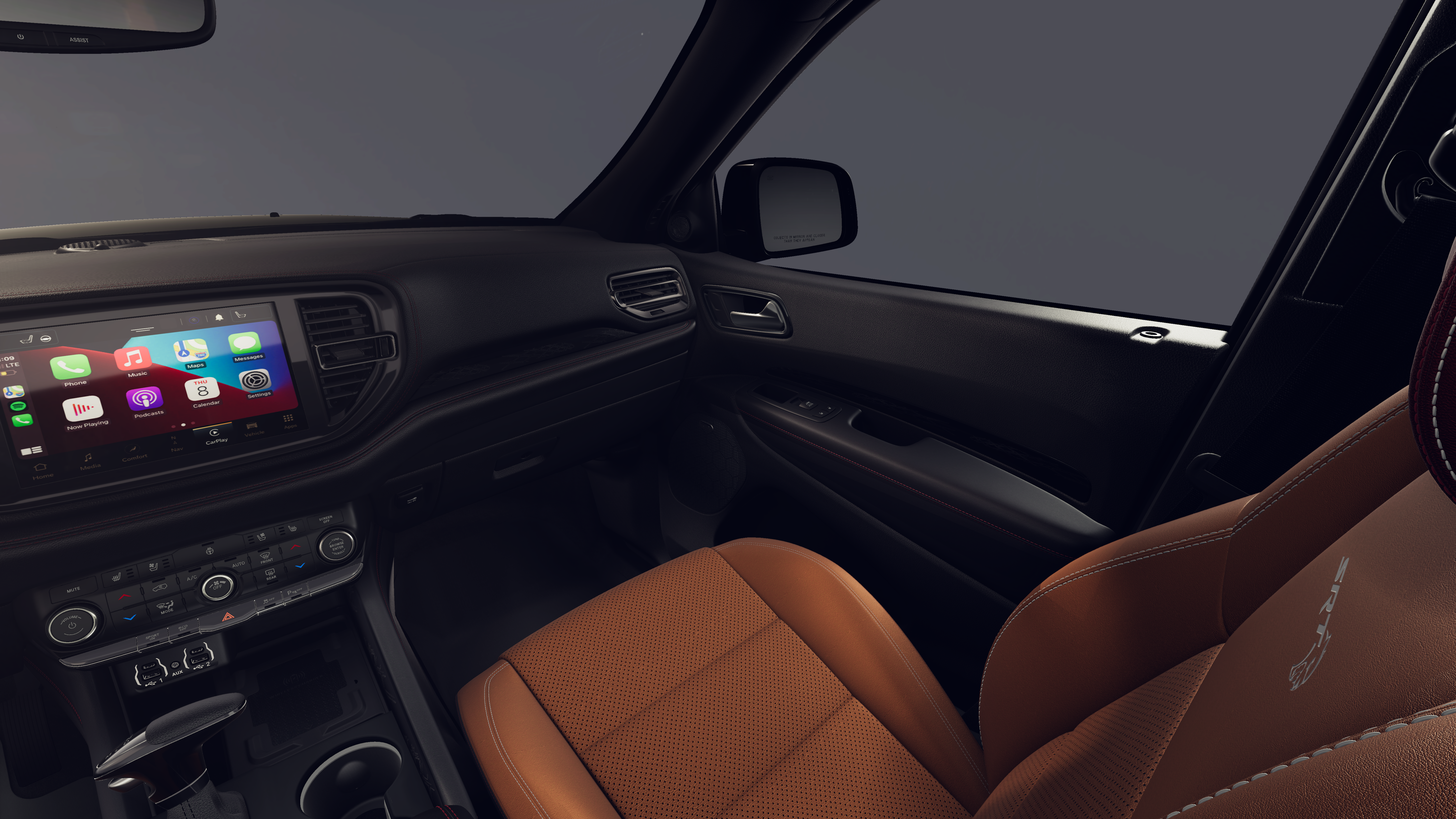 Blacktop Redline Package (2nd Row Fold/Tumble Captain Chairs, 2nd Row Mini Console with Cupholders, 2nd Row Seat Mounted Inboard Armrests, 3rd Row Floor Mat and Mini Console, 6-Passenger Seating, Black Dodge Grille Badge, Black Roof Rails, Blacktop Leather SRT Performance Seats, Crypto Sweep Etch Accents, Floor Console with Leather Armrest, Gloss Black Badges, Gloss Black Exterior Mirrors, Heated Second Row Seats, Integrated Roof Rail Crossbars, Performance Lower Splitter, Power 8-Way Driver Memory 8-Way Passenger Seats, Power Driver/Passenger 4-Way Lumbar Adjust, Premium Door Trim Panel, Premium Instrument Panel, Satin Black Dodge Tail Lamp Badge, SRT Rear Spoiler, and Ventilated Front Seats), Quick Order Package 22T GT Plus (115V Auxiliary Power Outlet, 7 and 4 Pin Wiring Harness, Adaptive Cruise Control with Stop, Auto High Beam Headlamp Control, Auto-Dimming Exterior Driver Mirror, Blind Spot with Trailer Detection, Class IV Receiver Hitch, Dual Remote USB Port - Charge Only, Exterior Mirrors with Heating Element, Exterior Mirrors with Memory, Exterior Mirrors with Supplemental Signals, Full Speed Forward Collision Warning Plus, Leather Trimmed Bucket Seats, Leather Wrapped Door Panels, LED Auxiliary Low Beam and Turn Signal, Power 6x9 Multi-Function Foldaway Mirrors, Power Sunroof, Power Tilt and Telescopic Steering Column, Radio/Driver Seat/Mirrors Memory, Red Accent Stitching, and Trailer Brake Control), 3.09 Rear Axle Ratio, 3rd row seats: split-bench, 4-Wheel Disc Brakes, 9 Speakers, ABS brakes, Air Conditioning, Alloy wheels, AM/FM radio: SiriusXM w/360L, Apple CarPlay/Android Auto, Auto-dimming Rear-View mirror, Auto-leveling suspension, Automatic temperature control, Brake assist, Bumpers: body-color, Cloth Bucket Seats with Shift Insert, Compass, Delay-off headlights, Driver door bin, Driver vanity mirror, Dual front impact airbags, Dual front side impact airbags, Electronic Stability Control, Emergency communication system: Dodge Connect, Four wheel independent suspension, Front anti-roll bar, Front Bucket Seats, Front Center Armrest w/Storage, Front dual zone A/C, Front License Plate Bracket, Front reading lights, Fully automatic headlights, Garage door transmitter, Heated door mirrors, Heated front seats, Heated steering wheel, Illuminated entry, Knee airbag, Leather steering wheel, Low tire pressure warning, Mopar Black Tubular Side Steps, Navigation System, Occupant sensing airbag, Outside temperature display, Overhead airbag, Overhead console, Panic alarm, ParkView Rear Back-Up Camera, Passenger door bin, Passenger vanity mirror, Power door mirrors, Power driver seat, Power Liftgate, Power steering, Power windows, Radio data system, Radio: Uconnect 5 Nav with 10.1 Display, Rain sensing wipers, Rear air conditioning, Rear anti-roll bar, Rear Load Leveling Suspension, Rear reading lights, Rear seat center armrest, Rear window defroster, Rear window wiper, Remote keyless entry, Security system, Speed control, Speed-sensing steering, Speed-Sensitive Wipers, Split folding rear seat, Spoiler, Sport steering wheel, Steering wheel mounted audio controls, Tachometer, Telescoping steering wheel, Tilt steering wheel, Traction control, Trip computer, Variably intermittent wipers, Voltmeter, Wheels: 20 x 8 Black Noise Split 5-Spoke, and Wheels: 20 x 8 Satin Carbon Split 5-Spoke.