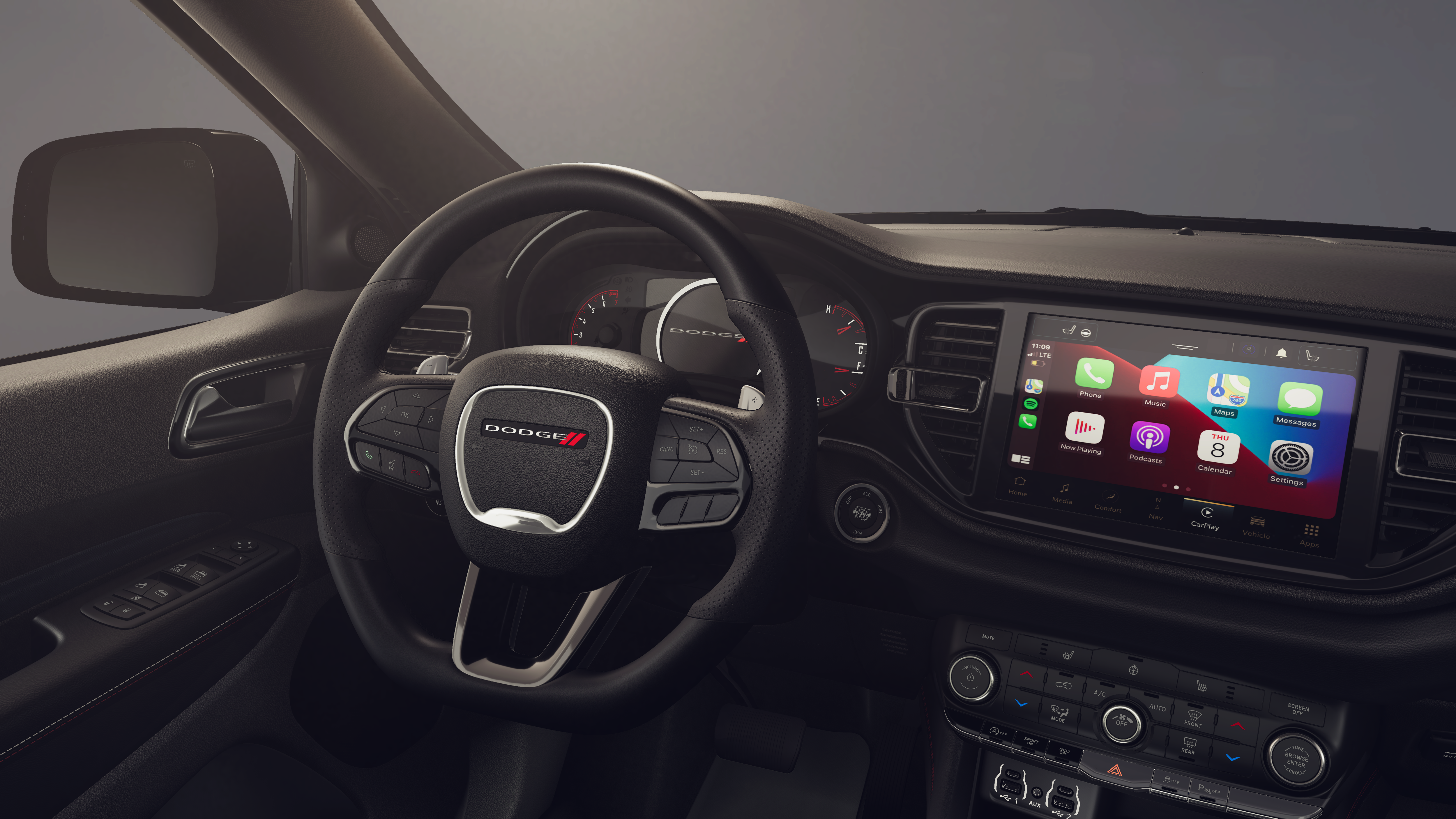 18 x 8 Painted Aluminum Wheels, 3.27 Rear Axle Ratio, 3rd row seats: split-bench, 4-Wheel Disc Brakes, 6 Speakers, ABS brakes, Air Conditioning, Alloy wheels, AM/FM radio: SiriusXM w/360L, Apple CarPlay/Android Auto, Auto-dimming Rear-View mirror, Auto-leveling suspension, Automatic temperature control, Brake assist, Bumpers: body-color, Cloth Bucket Seats with Shift Insert, Compass, Delay-off headlights, Driver door bin, Driver vanity mirror, Dual front impact airbags, Dual front side impact airbags, Electronic Stability Control, Emergency communication system: Dodge Connect, Four wheel independent suspension, Front anti-roll bar, Front Bucket Seats, Front Center Armrest w/Storage, Front dual zone A/C, Front reading lights, Fully automatic headlights, Garage door transmitter, Gloss Black Exterior Mirrors, Heated door mirrors, Heated front seats, Heated steering wheel, Illuminated entry, Knee airbag, Leather steering wheel, Low tire pressure warning, Navigation System, Occupant sensing airbag, Outside temperature display, Overhead airbag, Overhead console, Panic alarm, ParkView Rear Back-Up Camera, Passenger door bin, Passenger vanity mirror, Power door mirrors, Power driver seat, Power Liftgate, Power steering, Power windows, Radio data system, Radio: Uconnect 5 Nav with 10.1 Display, Rear air conditioning, Rear anti-roll bar, Rear Load Leveling Suspension, Rear reading lights, Rear seat center armrest, Rear window defroster, Rear window wiper, Remote keyless entry, Speed control, Speed-sensing steering, Speed-Sensitive Wipers, Split folding rear seat, Spoiler, Sport steering wheel, Steering wheel mounted audio controls, Tachometer, Telescoping steering wheel, Tilt steering wheel, Traction control, Trip computer, Variably intermittent wipers, and Voltmeter. Price includes: $1000 - 2026 National Engine Retail Bonus Cash . Exp. 04/30/2026