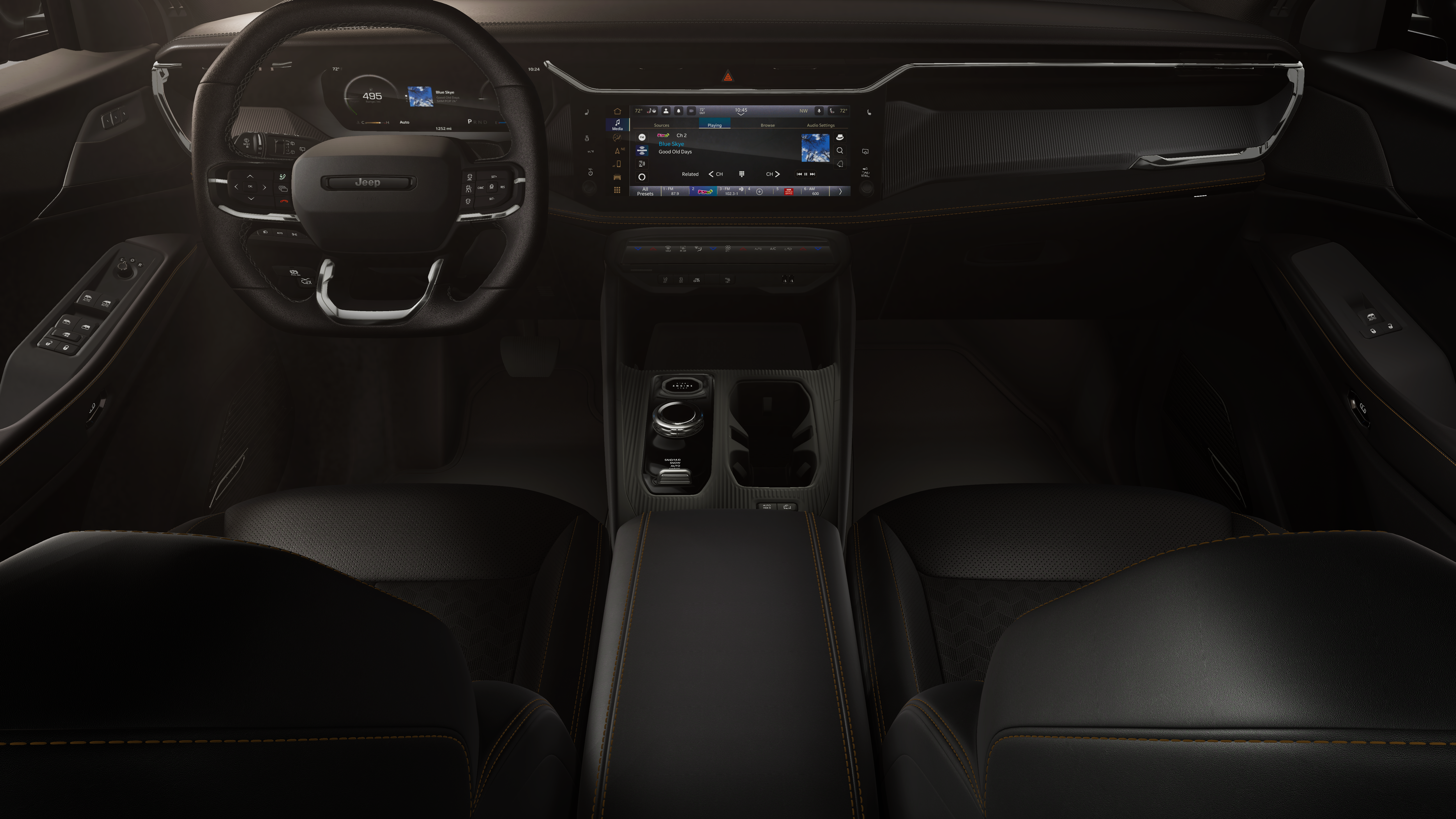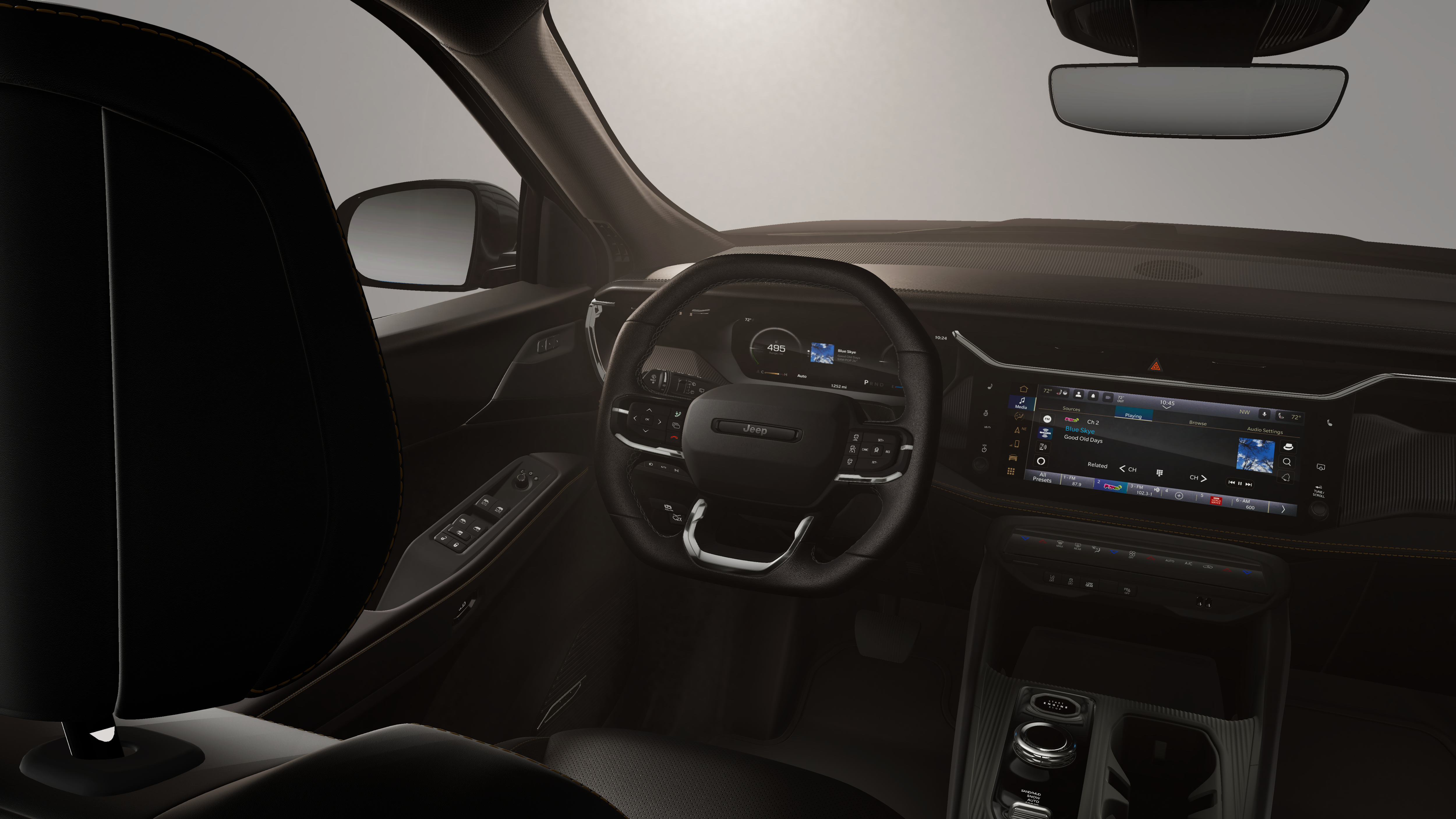 Quick Order Package 23Q Overland, Trailer Tow Group (7 and 4 Pin Wiring Harness, Class III Receiver Hitch, and Trailer Hitch Zoom), 10 Speakers, 4-Wheel Disc Brakes, 4.16 Final Drive Ratio, 4G LTE Wi-Fi Hot Spot, ABS brakes, Air Conditioning, Alloy wheels, AM/FM radio: SiriusXM with 360L, Apple CarPlay, Apple CarPlay/Android Auto, Audio memory, Auto High-beam Headlights, Auto-dimming Rear-View mirror, Automatic temperature control, Brake assist, Compass, Delay-off headlights, Driver door bin, Driver vanity mirror, Dual front impact airbags, Dual front side impact airbags, Electronic Stability Control, Emergency communication system, Four wheel independent suspension, Front anti-roll bar, Front Bucket Seats, Front Center Armrest, Front dual zone A/C, Front fog lights, Front License Plate Bracket, Front reading lights, Fully automatic headlights, Garage door transmitter, Global Telematics Box Module (TBM), Gloss Black Mirrors, Google Android Auto, Heated door mirrors, Heated Exterior Mirrors, Heated front seats, Heated steering wheel, HVAC memory, Illuminated entry, Knee airbag, Low tire pressure warning, Memory seat, Navigation System, Occupant sensing airbag, Outside temperature display, Overhead airbag, Overhead console, Panic alarm, ParkView Rear Back-Up Camera, Passenger door bin, Passenger vanity mirror, Power door mirrors, Power driver seat, Power Liftgate, Power moonroof, Power passenger seat, Power steering, Power windows, Radio data system, Radio: Uconnect 5 Nav w/12.3 Display, Rain sensing wipers, Rear anti-roll bar, Rear reading lights, Rear seat center armrest, Rear side impact airbag, Rear window defroster, Rear window wiper, Remote keyless entry, Security system, SiriusXM w/360L, Speed control, Speed-sensing steering, Split folding rear seat, Spoiler, Steering wheel mounted audio controls, Tachometer, Telescoping steering wheel, Tilt steering wheel, Traction control, Trip computer, Turn signal indicator mirrors, Unique Capri Leatherette Perforated Seats, US/Canada Connectivity, Variably intermittent wipers, Voltmeter, and Wheels: 20 x 8 Machine Face Painted Aluminum.