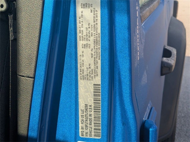 Quick Order Package 24B Sport, 110 Mph Vehicle Max Speed Calibration, 12.3 Touchscreen Display, 3.73 Rear Axle Ratio, 4-Wheel Disc Brakes, 4G LTE Wi-Fi Hot Spot, 8 Speakers, ABS brakes, Air Conditioning, Alexa Built-in, AM/FM radio: SiriusXM with 360L, Apple CarPlay, Apple CarPlay/Android Auto, Brake assist, Compass, Connectivity - US/Canada, Delay-off headlights, Driver door bin, Driver vanity mirror, Dual front impact airbags, Dual front side impact airbags, Electronic Stability Control, Front anti-roll bar, Front Bucket Seats, Front Center Armrest w/Storage, Front fog lights, Front License Plate Bracket, Front reading lights, Google Android Auto, Illuminated entry, Integrated roll-over protection, Low tire pressure warning, MOPAR Spray in Bedliner, Normal Duty Suspension, Occupant sensing airbag, Outside temperature display, Overhead airbag, Panic alarm, ParkView Rear Back-Up Camera, Passenger door bin, Passenger vanity mirror, Power steering, Power windows, Radio data system, Radio: Uconnect 5 with 12.3 Display, Rear anti-roll bar, Rear reading lights, Remote keyless entry, Speed control, Split folding rear seat, Steering wheel mounted audio controls, Tachometer, Telescoping steering wheel, Tilt steering wheel, Traction control, Trip computer, USB Host Flip, Variably intermittent wipers, Voltmeter, and Wheels: 17 x 7.5 Black Steel Styled.