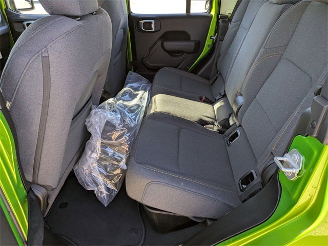 Quick Order Package 24B Sport, 110 Mph Vehicle Max Speed Calibration, 12.3 Touchscreen Display, 3.73 Rear Axle Ratio, 4-Wheel Disc Brakes, 4G LTE Wi-Fi Hot Spot, 8 Speakers, ABS brakes, Air Conditioning, Alexa Built-in, AM/FM radio: SiriusXM with 360L, Apple CarPlay, Apple CarPlay/Android Auto, Black 3-Piece Hard Top, Brake assist, Compass, Connectivity - US/Canada, Delay-off headlights, Driver door bin, Driver vanity mirror, Dual front impact airbags, Dual front side impact airbags, Electronic Stability Control, Freedom Panel Storage Bag, Front anti-roll bar, Front Bucket Seats, Front Center Armrest w/Storage, Front fog lights, Front reading lights, Google Android Auto, Illuminated entry, Integrated roll-over protection, Low tire pressure warning, MOPAR Spray in Bedliner, Normal Duty Suspension, Occupant sensing airbag, Outside temperature display, Overhead airbag, Panic alarm, ParkView Rear Back-Up Camera, Passenger door bin, Passenger vanity mirror, Power steering, Power windows, Radio data system, Radio: Uconnect 5 with 12.3 Display, Rear anti-roll bar, Rear reading lights, Rear Sliding Window, Rear Window Defroster, Remote keyless entry, Speed control, Split folding rear seat, Steering wheel mounted audio controls, Tachometer, Telescoping steering wheel, Tilt steering wheel, Traction control, Trip computer, USB Host Flip, Variably intermittent wipers, Voltmeter, and Wheels: 17 x 7.5 Black Steel Styled.