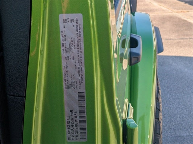 Dual Top Group (Premium Black Sunrider Soft Top with Dual Top Group), Quick Order Package 24Y Rubicon X (12.3 Touchscreen Display, 4G LTE Wi-Fi Hot Spot, Acoustic Front Seat Area Carpet, Acoustic Laminated Front Door Glass, Alpine Premium Audio System, Apple CarPlay, Auto High Beam Headlamp Control, Auto-Dimming Rear-View Mirror, Blind Spot and Cross Path Detection, Body Color 3-Piece Hard Top, Body Color Rubicon Highline Flare, Connected Travel and Traffic Services, Connectivity - US/Canada, Freedom Panel Storage Bag, Google Android Auto, HD Radio, Heated Front Seats, Heated Steering Wheel, Integrated Off-Road Camera, Integrated Voice Command with Bluetooth®, Leather Wrapped Park Brake Handle, Leather Wrapped Shift Knob, MOPAR Hardtop Headliner, Nappa Leather Seats, No Soft Top, ParkSense Rear Park Assist System, Power 4-Way Driver Lumbar Adjust, Power 4-Way Passenger Lumbar Adjust, Power Adjust 8-Way Driver Seat, Power Adjust 8-Way Front Passenger Seat, Premium Door Trim Panel, Radio: Uconnect 5 Navigation with 12.3 Display, Rear Window Defroster, Rear Window Wiper/Washer, SiriusXM with 360L, Steel Front Bumper, Steel Rear Bumper, and Universal Garage Door Opener), Trailer Tow and Auxiliary Switch Group (Auxiliary Switches and Class II Receiver Hitch), Trailer Tow Prep Package, 35 Tire Suspension, 4-Wheel Disc Brakes, 8 Speakers, ABS brakes, Air Conditioning, Alloy wheels, AM/FM radio: SiriusXM with 360L, Apple CarPlay/Android Auto, Automatic temperature control, Aux Battery, Brake assist, Cloth Low-Back Bucket Seats, Compass, Delay-off headlights, Driver door bin, Driver vanity mirror, Dual front impact airbags, Dual front side impact airbags, Electronic Stability Control, Emergency communication system: Jeep Connect, For More Info, Call 800-643-2112, Front anti-roll bar, Front Bucket Seats, Front Center Armrest w/Storage, Front dual zone A/C, Front fog lights, Front reading lights, Fully automatic headlights, Heated door mirrors, Illuminated entry, Integrated Center Stack Radio, Integrated roll-over protection, Low tire pressure warning, MOPAR Hinge-Gate Reinforcement, Non-Lock Fuel Cap Without Discriminator, Occupant sensing airbag, Outside temperature display, Overhead airbag, Panic alarm, ParkView Rear Back-Up Camera, Passenger door bin, Passenger vanity mirror, Performance Suspension, Power door mirrors, Power steering, Power windows, Radio data system, Radio: Uconnect 5 with 12.3 Display, Rear anti-roll bar, Rear reading lights, Remote keyless entry, Security system, SiriusXM Radio Service, Speed control, Split folding rear seat, Steering wheel mounted audio controls, Stop-Start Dual Battery System, Tachometer, Telescoping steering wheel, Tilt steering wheel, Traction control, Trip computer, Variably intermittent wipers, Voltmeter, Wheels: 17 x 7.5 Machined/Painted Black, and Wheels: 17 x 8 Machined with Black Pockets.