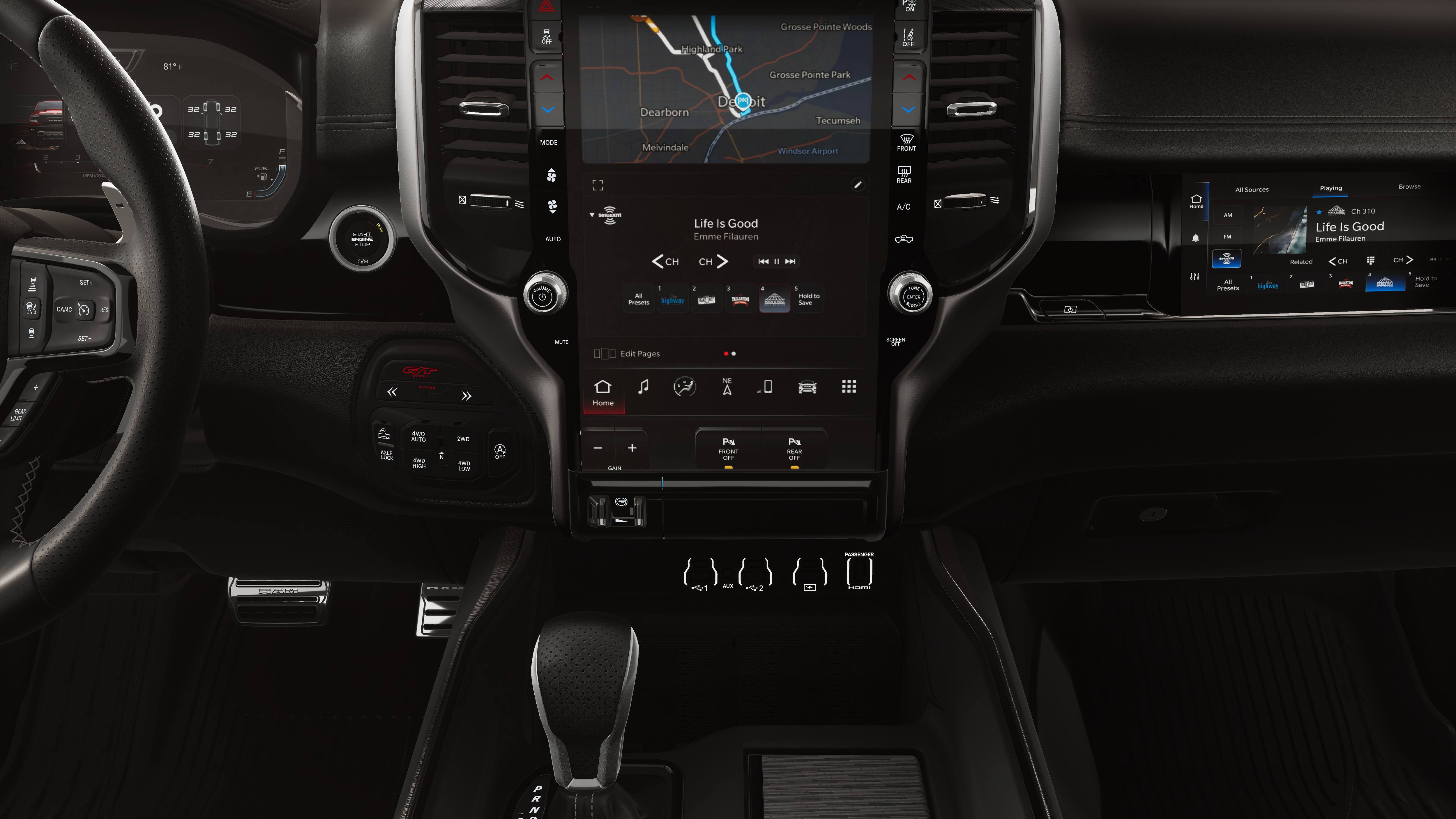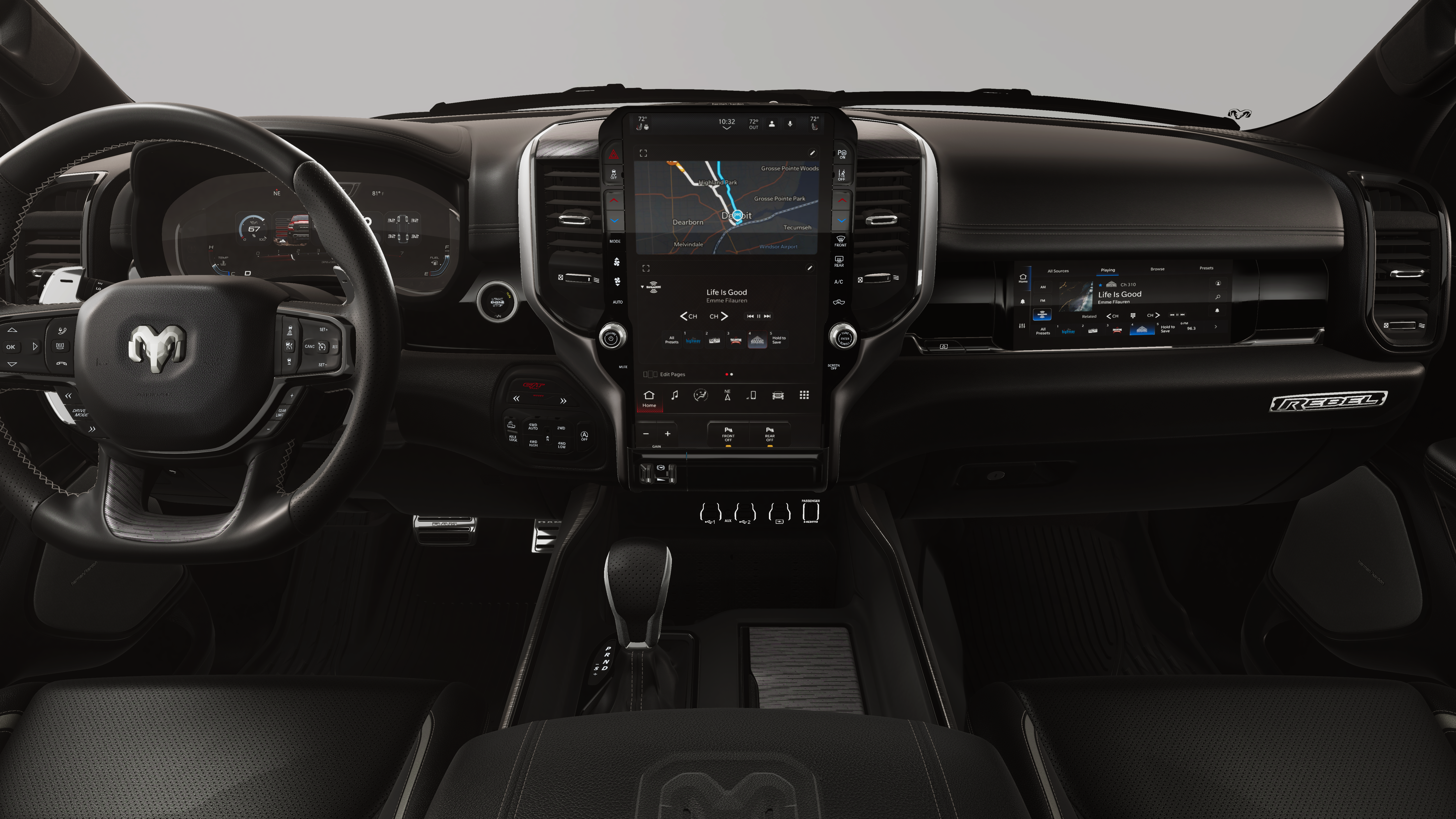 Bed Utility Group (Exterior 115V AC Outlet, MOPAR 4 Adjustable Cargo Tie-Down Hooks, and MOPAR Spray in Bedliner), G/T Package (4 Way Front Headrests, Bucket Seats, Driver Seat Memory, Floor Console, Front Seat Back Map Pockets, G/T Decal, G/T Exhaust, GT Interior Theme, Heated Front Seats, Heated Second Row Seats, Heated Steering Wheel, Leather Wrapped Shift Knob, Leather-Wrapped Steering Wheel, Leather/Vinyl Bucket Seats, MOPAR Bright Pedal Kit, Performance Pages, Power 4-Way Driver Lumbar Adjust, Power 4-Way Passenger Lumbar Adjust, Power Adjust 8-Way Driver Seat, Power Adjust 8-Way Front Passenger Seat, Rear 60/40 Folding Split Recline Seat, Steering Wheel Mounted Shift Control, Under Seat Lighting, and Ventilated Front Seats), Quick Order Package 21W Rebel, Rebel Level 2 Equipment Group (115V Auxiliary Rear Power Outlet, 14.4 Touchscreen Display, 2-Door Passive Entry, Front Door Locks, 4G LTE Wi-Fi Hot Spot, Accent Color Door Handles, Accent Color Premium Power Mirrors, Accent Color Tailgate Handle, Apple CarPlay, Auto Power-Folding Mirrors, Auto-Dimming Exterior Driver Mirror, Black Painted Exterior Mirrors Caps, Connected Travel and Traffic Services, Connectivity - US/Canada, Convex Wide-Angle Exterior Mirror Insert, Disassociated Touchscreen Display, Dual Wireless Charging Pad, Exterior Mirrors Approach Lamps, Exterior Mirrors Courtesy Lamps, Exterior Mirrors with Heating Element, Exterior Mirrors with Memory, Exterior Mirrors with Supplemental Signals, Front Passenger Interactive Display, Global Telematics Box Module, Google Android Auto, GPS Antenna Input, GPS Navigation, Harman/Kardon 19 Speaker Premium Sound, HD Radio, Integrated Center Stack Radio, Integrated Voice Command with Bluetooth®, Media Hub with 2 Charge Only USBs, Off-Road Information Pages, Power 2-Way Passenger Lumbar Adjust, Power Adjustable Pedals with Memory, Power Tailgate, Proximity Approach/Departure Lamps, Radio: Uconnect 5 Nav with 14.4 Display, Radio/Driver Seat/Mirrors/Pedals Memory, Rain Sensitive Windshield Wipers, Rear Window Defroster, Security Alarm, SiriusXM Radio Service, SiriusXM with 360L, Smartphone as a Key Capable, and USB Host Flip), 10 Speakers, 3.92 Rear Axle Ratio, 4-Wheel Disc Brakes, ABS brakes, Active Noise Control System, Air Conditioning, Alloy wheels, AM/FM radio: SiriusXM with 360L, Apple CarPlay/Android Auto, Auto High-beam Headlights, Auto-dimming Rear-View mirror, Automatic temperature control, Black Exterior Mirrors, Brake assist, Cloth/Vinyl Bucket Seats, Compass, Delay-off headlights, Dome Dual LED Reading Lamp, Driver door bin, Driver vanity mirror, Dual front impact airbags, Dual front side impact airbags, Dual-Pane Panoramic Sunroof, Electronic Stability Control, Front anti-roll bar, Front Bucket Seats, Front Center Armrest w/Storage, Front dual zone A/C, Front fog lights, Front reading lights, Front wheel independent suspension, Full Length Upgraded Floor Console, Fully automatic headlights, Garage door transmitter, Heated door mirrors, Heated front seats, Heated steering wheel, Illuminated entry, Leather steering wheel, Low tire pressure warning, Manual Folding Exterior Mirrors, Navigation System, Occupant sensing airbag, Outside temperature display, Overhead airbag, Overhead console, Panic alarm, ParkView Rear Back-Up Camera, Passenger door bin, Passenger vanity mirror, Power 2-Way Driver Lumbar Adjust, Power door mirrors, Power driver seat, Power steering, Power windows, Radio data system, Radio: Uconnect 5 Navigation with 12.0 Display, Rear 60/40 Folding Seat, Rear anti-roll bar, Rear seat center armrest, Rear step bumper, Remote keyless entry, Speed control, Split folding rear seat, Steering wheel mounted audio controls, Tachometer, Telescoping steering wheel, Tilt steering wheel, Traction con Price includes: $1000 - 2026 National Bonus Cash . Exp. 03/02/2026 $3500 - 2026 National Retail Consumer Cash . Exp. 0